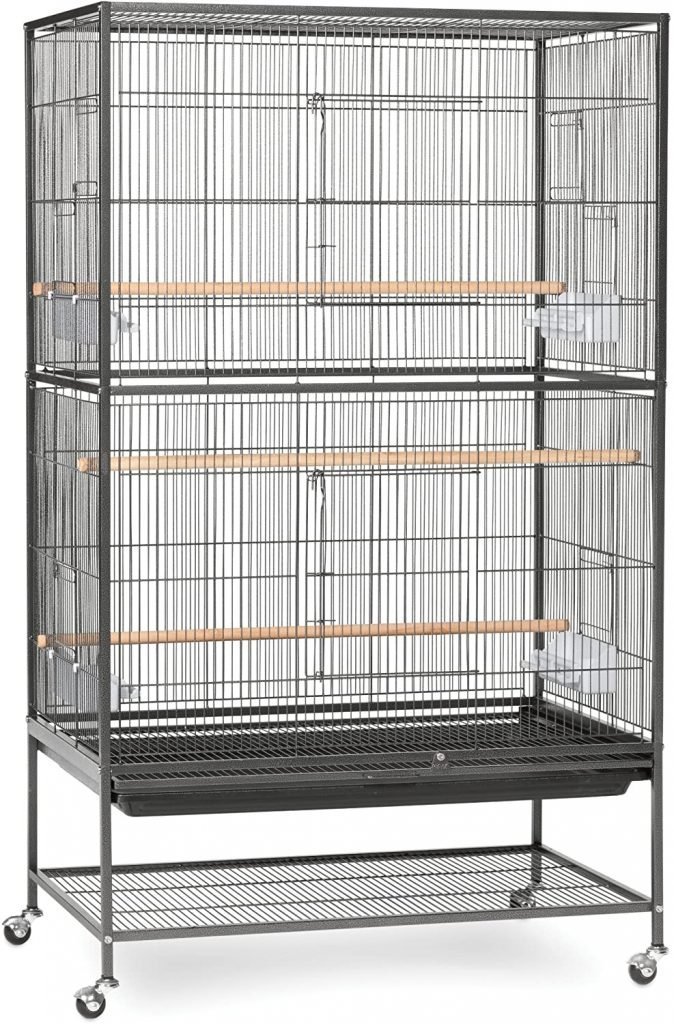 Prevue Pet Merchandise Wrought Iron Flight Cage with Stand F040 Black Fowl Cage makes the right house for a number of parakeets, canaries or finches. That includes two massive entrance doorways and a backside shelf for extra cupboard space, this flight cage stands on rolling casters and is well moved from room to room. 4 plastic double cups and three wooden perches are included on this economical additional massive cage. Our wrought iron Flight Cage with Stand is 31-inch lengthy, 20-1\/2-inch extensive and 53-inch excessive with 1\/2-inch wire spacing, out there in Black Wrought Iron solely.