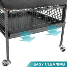 Vision cages come with large front double doors. They open towards the inside and serve as a convenient landing pad for birds returning from a brief jaunt outside the cage. Another great benefit is that when birds perch on the open doors, their waste falls in the base inside the cage and not n the floor. The doors work independently, so you can close one and leave the other one open. This comes in handy when you need to handle a bird, because it allows you to reach inside and minimizes the chances of your bird escaping.